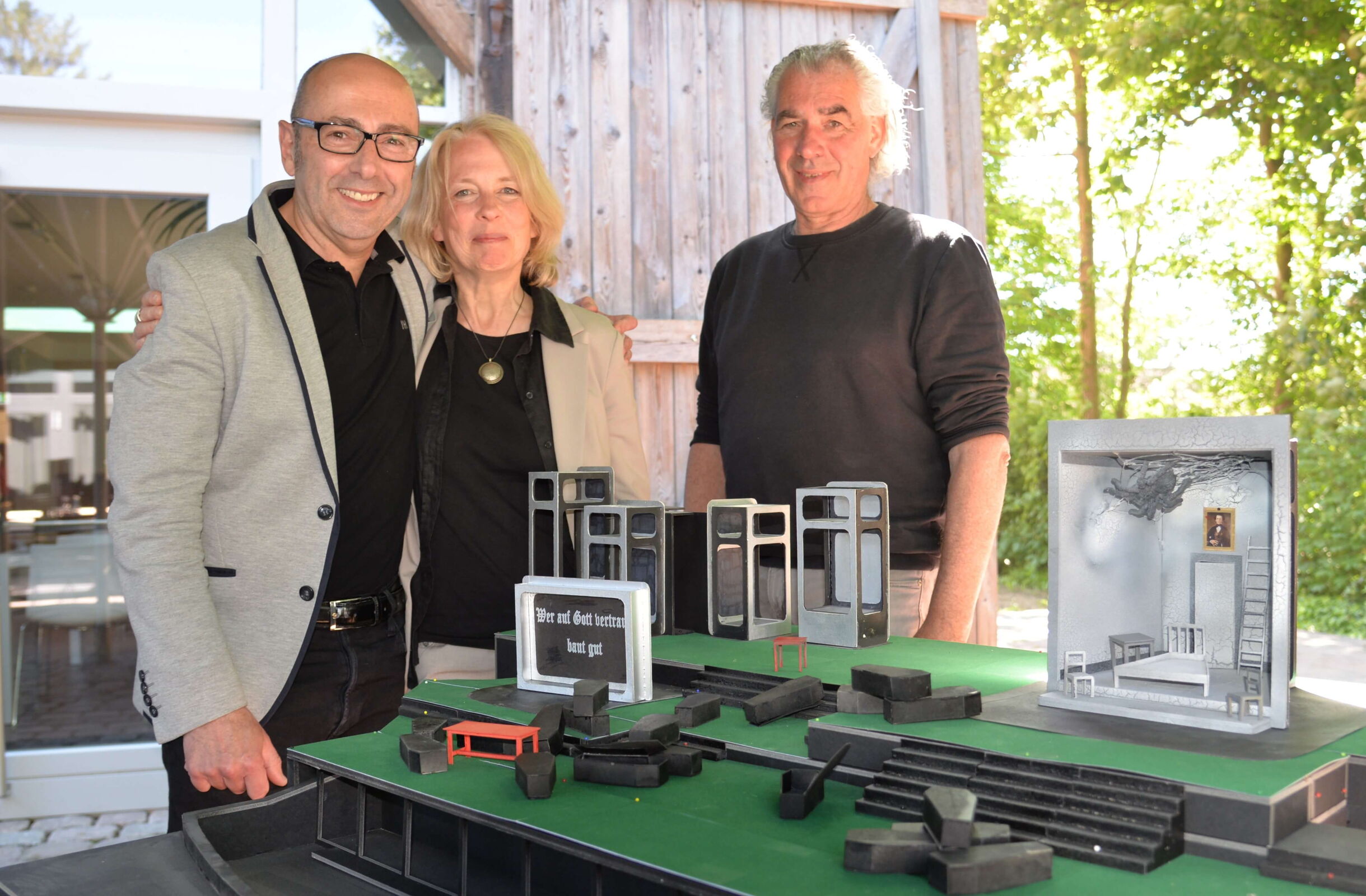 Die Handlung schwebe zwischen den Welten, im Jetzt, der Vergangenheit und in der Phantasiewelt. „Wir spielen in einer von Gott verlassenen Welt. Während in Bregenz fertige Häuschen wie bei Hänsel und Gretel gezeigt werden, werden unsere skeletthafte Baustellen, nicht ganz fertig, nicht ganz kaputt sein“, beschreibt der Regisseur die Idee, die Bühnenbauer Jörg Brombacher mit seinem Team umsetzt.