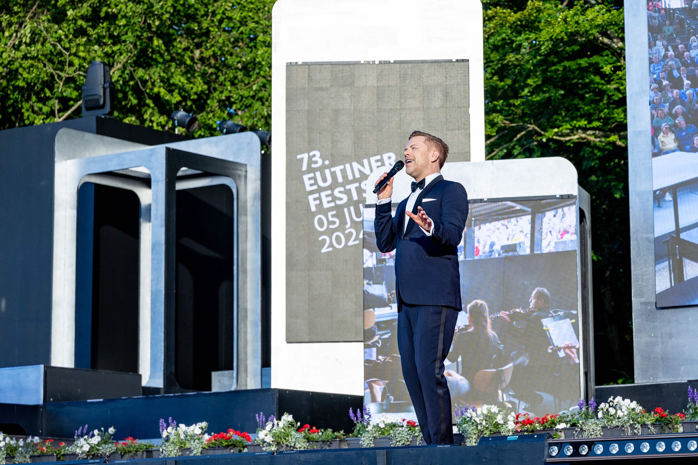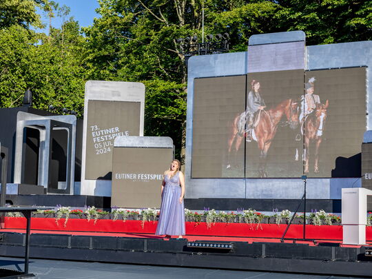 Herrliches Sommerwetter, erste Kostproben aus der neuen Freischütz-Inszenierung, viele prominente Redner und vor allem großes Lob für die neue Tribüne: So holperig der Weg zum Bau des neuen Schmuckstücks der Eutiner Festspiele und der ganzen Stadt auch war, so glanzvoll war die vom Sänger Tom Gaebel moderierte Eröffnung am Freitagabend, 28. Juni 2024.