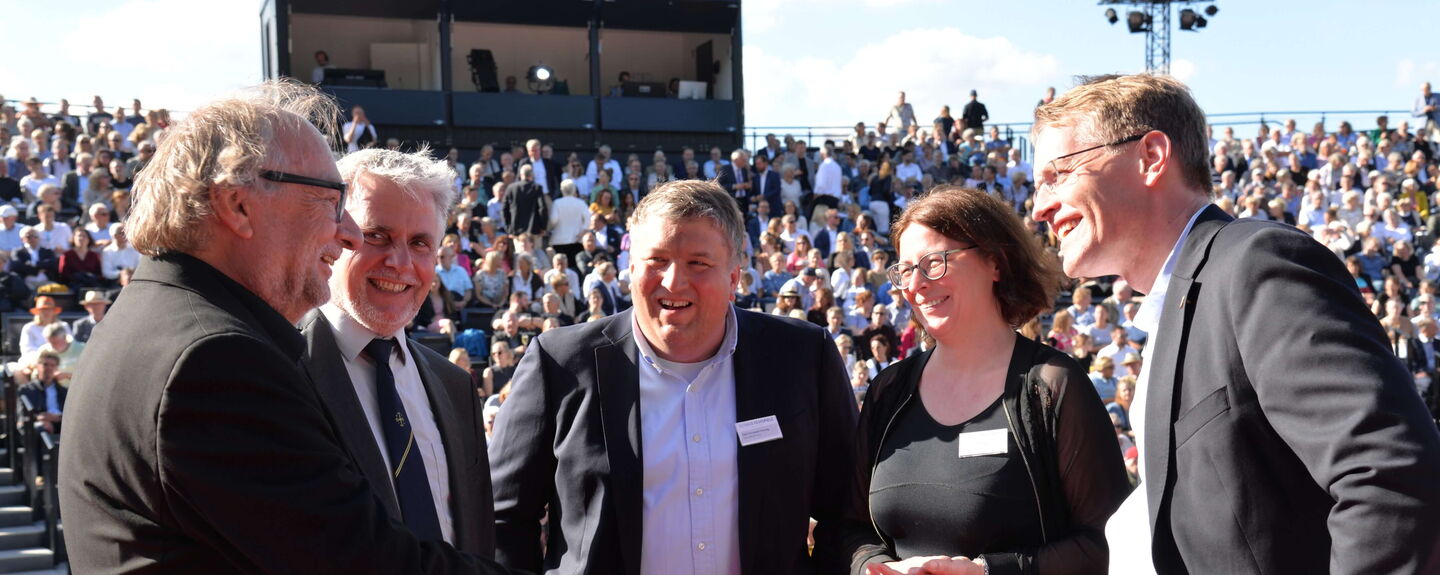 Von einem Tag der Freude und etwas Großartigem, das in Eutin entstanden sei, sprach der Festspiel-Schirmherr und Ministerpräsident Daniel Günther (CDU). Eutin habe ein kulturelles Herz gezeigt. „Der Bau der neuen Tribüne ist eine Gemeinschaftsleistung, die zeigt, wir in Schleswig-Holstein stehen zu unserer kulturellen Verantwortung.“ Der Ministerpräsident stellte die Festspiele in eine Reihe mit Veranstaltungen vom Schleswig-Holstein Musikfestival bis Wacken.