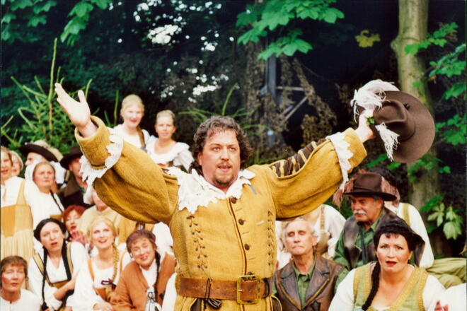 Die historischen Texte und Abbildungen dieser Rückschau (bis in die 1950er Jahre) stammen aus den jeweiligen Programmheften und Fotosammlungen und spiegeln ihre Zeit. Sie könnten Begriffe und Darstellungen enthalten, die heute als diskriminierend oder unangemessen gelten. Die Eutiner Festspiele distanzieren sich daher ausdrücklich von solchen Inhalten. Auch die Erwähnung teils umstrittener Persönlichkeiten erfolgt ausschließlich im historischen Zusammenhang. Der digitale Rückblick soll Geschichte transparent machen und zur kritischen Auseinandersetzung mit Sprache, Haltung und Zeitgeschehen anregen. Wo erforderlich, ergänzen wir erläuternde Hinweise. Hinweise auf sachliche Fehler oder notwendige Kontexte nehmen wir gerne unter info@eutiner-festspiele.de entgegen.