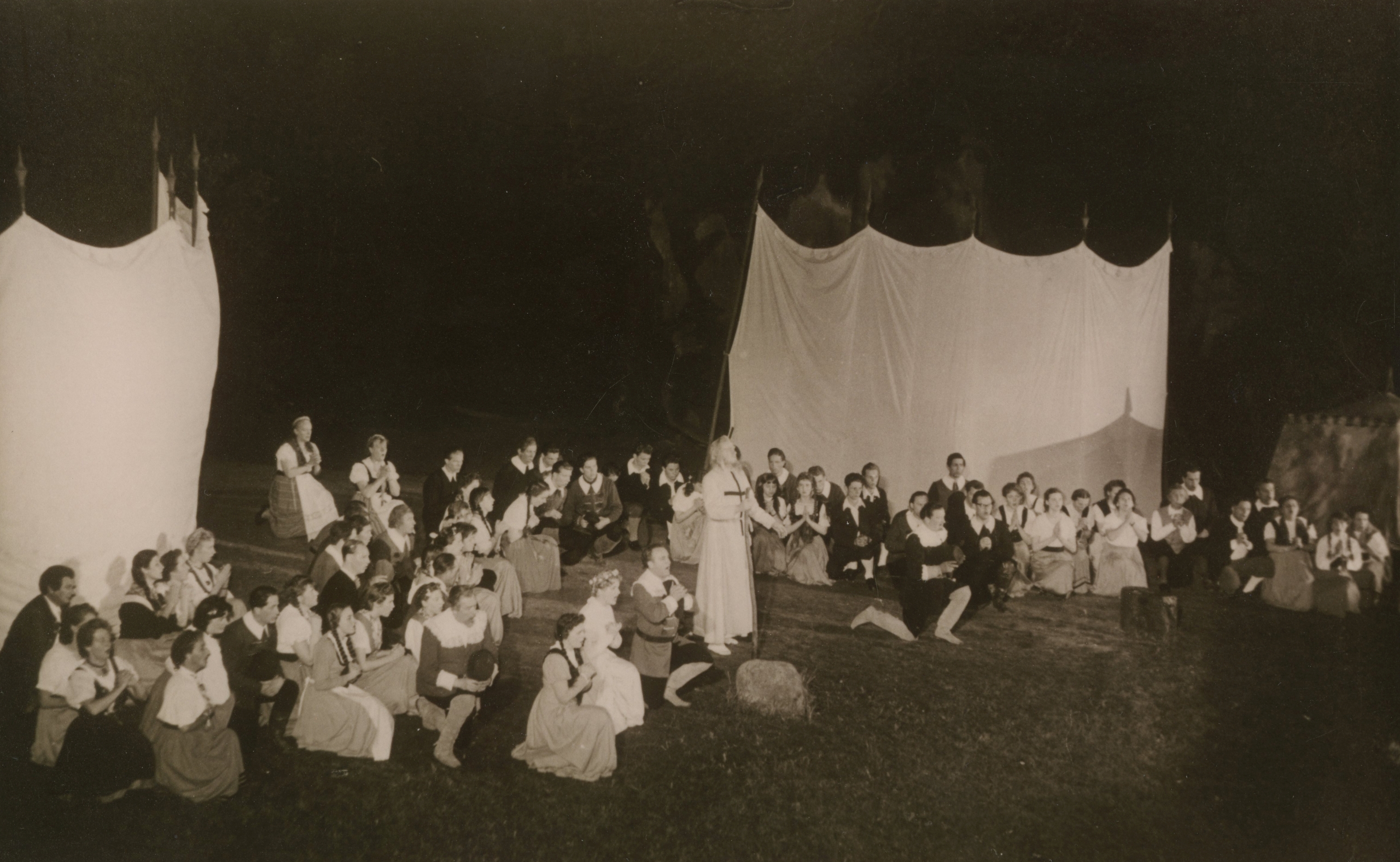 Die Schlussszene, Karl Heinz Kahlstorf als Eremit unter den Sternen der heraufziehenden Nacht war in ihrer Andachtswirkung wohl unüberbietbar. Nach langem Schweigen: Blumen über Blumen den Solisten, dem Vater des Sommerspiel -Gedankens, Kurt Brinck, und dem musikalischen Leiter Erwin Jamrosy. Immer wieder schalteten sich unter Beifallsjubel die Lichtwerfer ein, bis endlich doch das Dämmerdunkel seinen Eisernen Vorhang fallen ließ. – Die Presse war des Lobes voll.
