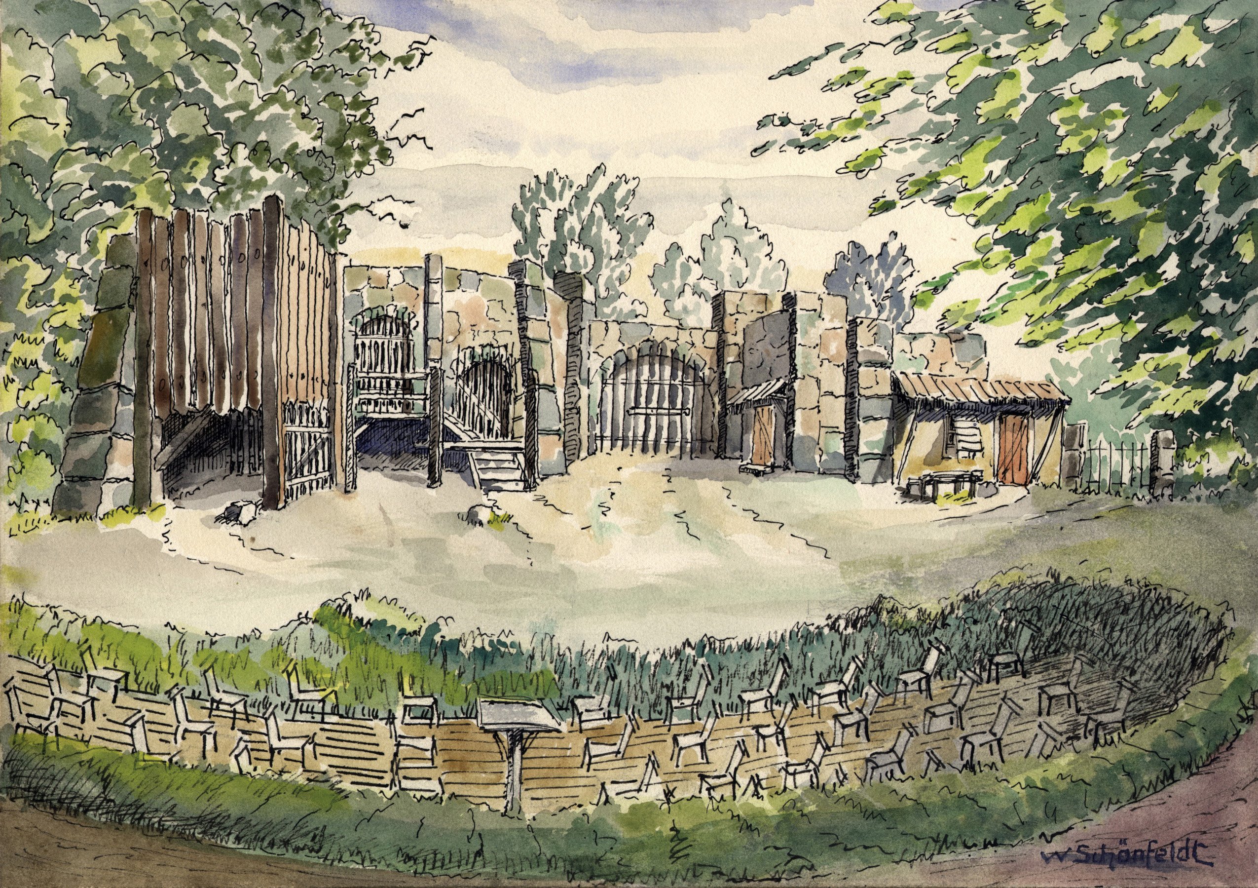 Die Oper auf eine Freilichtbühne zu bringen scheint zunächst ein Wagnis; aber Kurt Brincks Regie und Wulf Schwerdtfeger haben es bestanden. In angedeuteten spanischen Staatsgefängnishof (1. Akt) und in den Paradeplatz der Schlussszene kann freundlich die Natur hereinspielen; sie umgibt versöhnend das düstere unterirdische Gefängnis Florestans, um dessen Errettung es in der Handlung des zweiaktigen Meisterwerks Beethovens geht.