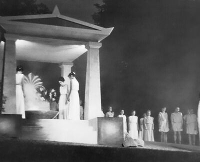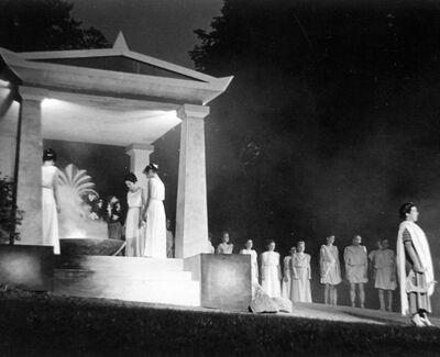 Die historischen Texte und Abbildungen dieser Rückschau (bis in die 1950er Jahre) stammen aus den jeweiligen Programmheften und Fotosammlungen und spiegeln ihre Zeit. Sie könnten Begriffe und Darstellungen enthalten, die heute als diskriminierend oder unangemessen gelten. Die Eutiner Festspiele distanzieren sich daher ausdrücklich von solchen Inhalten. Auch die Erwähnung teils umstrittener Persönlichkeiten erfolgt ausschließlich im historischen Zusammenhang. Der digitale Rückblick soll Geschichte transparent machen und zur kritischen Auseinandersetzung mit Sprache, Haltung und Zeitgeschehen anregen. Wo erforderlich, ergänzen wir erläuternde Hinweise. Hinweise auf sachliche Fehler oder notwendige Kontexte nehmen wir gerne unter info@eutiner-festspiele.de entgegen.