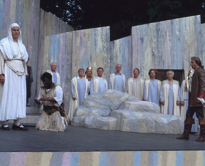 Die historischen Texte und Abbildungen dieser Rückschau (bis in die 1950er Jahre) stammen aus den jeweiligen Programmheften und Fotosammlungen und spiegeln ihre Zeit. Sie könnten Begriffe und Darstellungen enthalten, die heute als diskriminierend oder unangemessen gelten. Die Eutiner Festspiele distanzieren sich daher ausdrücklich von solchen Inhalten. Auch die Erwähnung teils umstrittener Persönlichkeiten erfolgt ausschließlich im historischen Zusammenhang. Der digitale Rückblick soll Geschichte transparent machen und zur kritischen Auseinandersetzung mit Sprache, Haltung und Zeitgeschehen anregen. Wo erforderlich, ergänzen wir erläuternde Hinweise. Hinweise auf sachliche Fehler oder notwendige Kontexte nehmen wir gerne unter info@eutiner-festspiele.de entgegen.