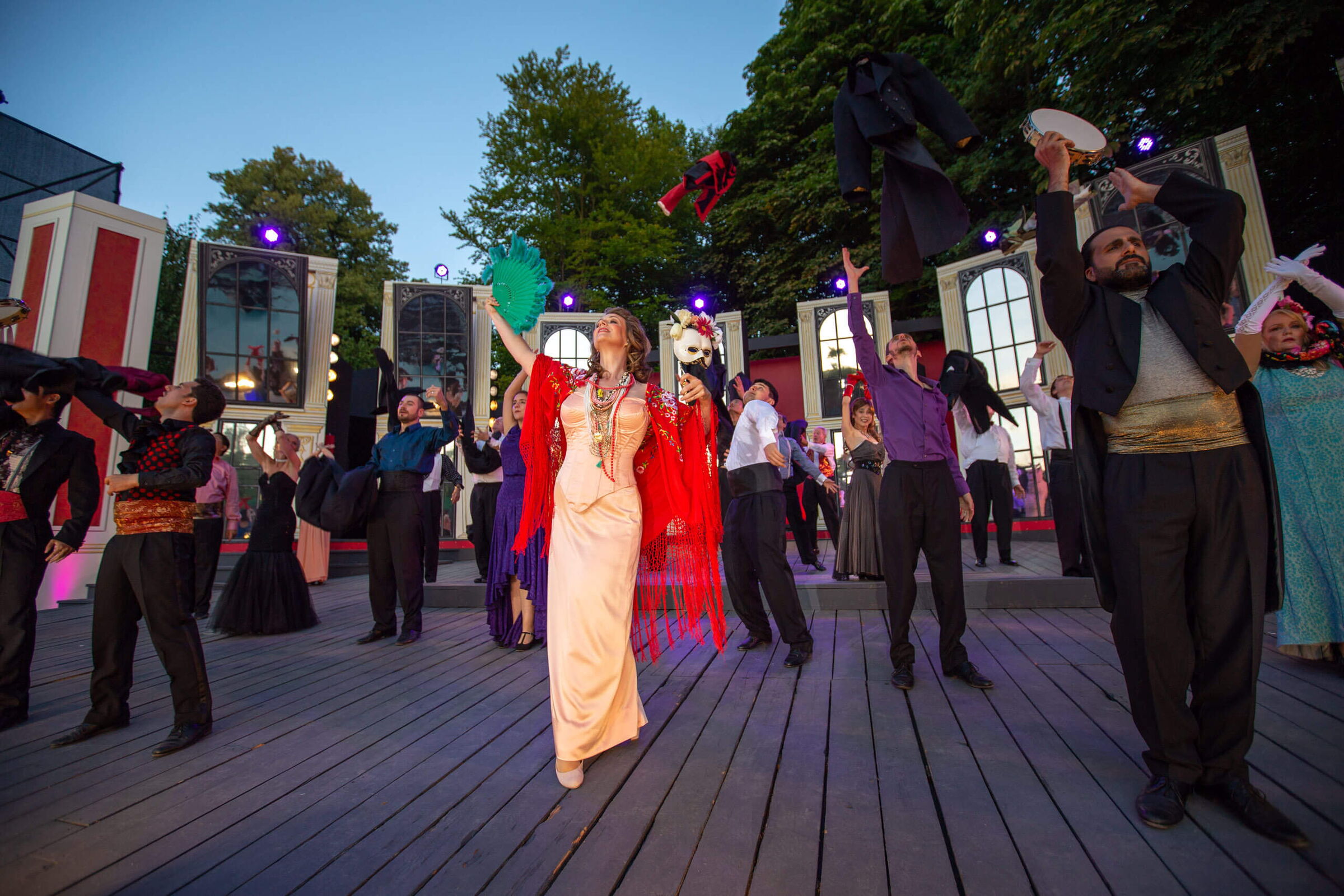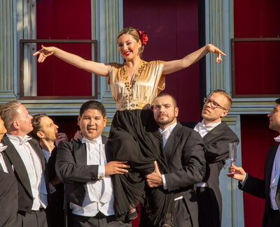 Intendanz inne: Dominique Caron. Als erste weibliche Stimme im Intendanten-Chor setzt sie die Tradition populärer Musikaufführungen im Schlossgarten fort – mit Opern wie Nabucco, Carmen, Die Zauberflöte oder dem Musical Anatevka. Carons Credo: Sie macht sich stark für ein Team auf und hinter der Bühne und eine harmonische Zusammenarbeit. Und