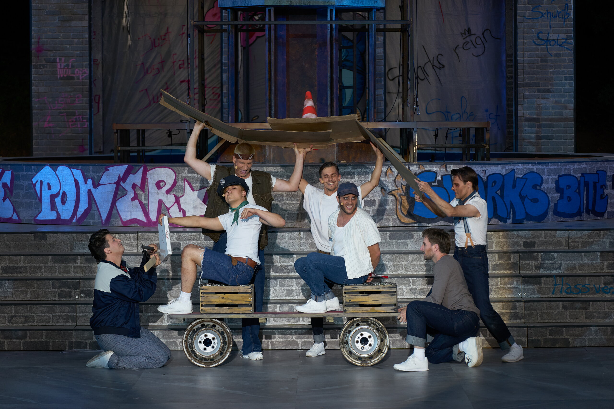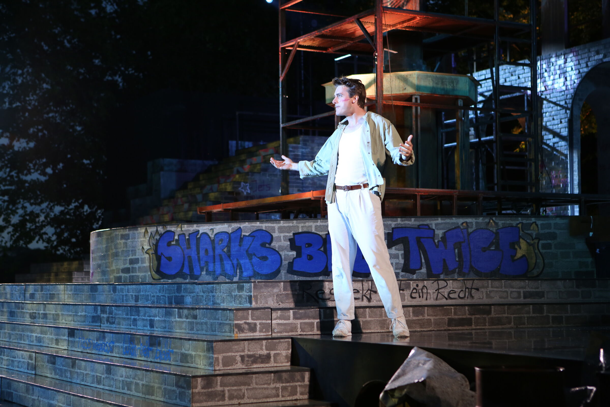 Grundsätzlich war und ist es nicht schwer, die Rechte für die West Side Story zu bekommen, wenn man sich rechtzeitig genug im Voraus darum bemüht. Belegbar ist die recht hohe Anzahl an Inszenierungen dieses Musicals in diesem und vorigem Jahr im deutschsprachigen Raum mit fünf bis sechs Versionen in Deutschland und Österreich. Ich selber war überrascht, dass die Rechteinhaber so viele Lizenzen gleichzeitig rausgegeben haben, das ist nicht unbedingt so üblich.