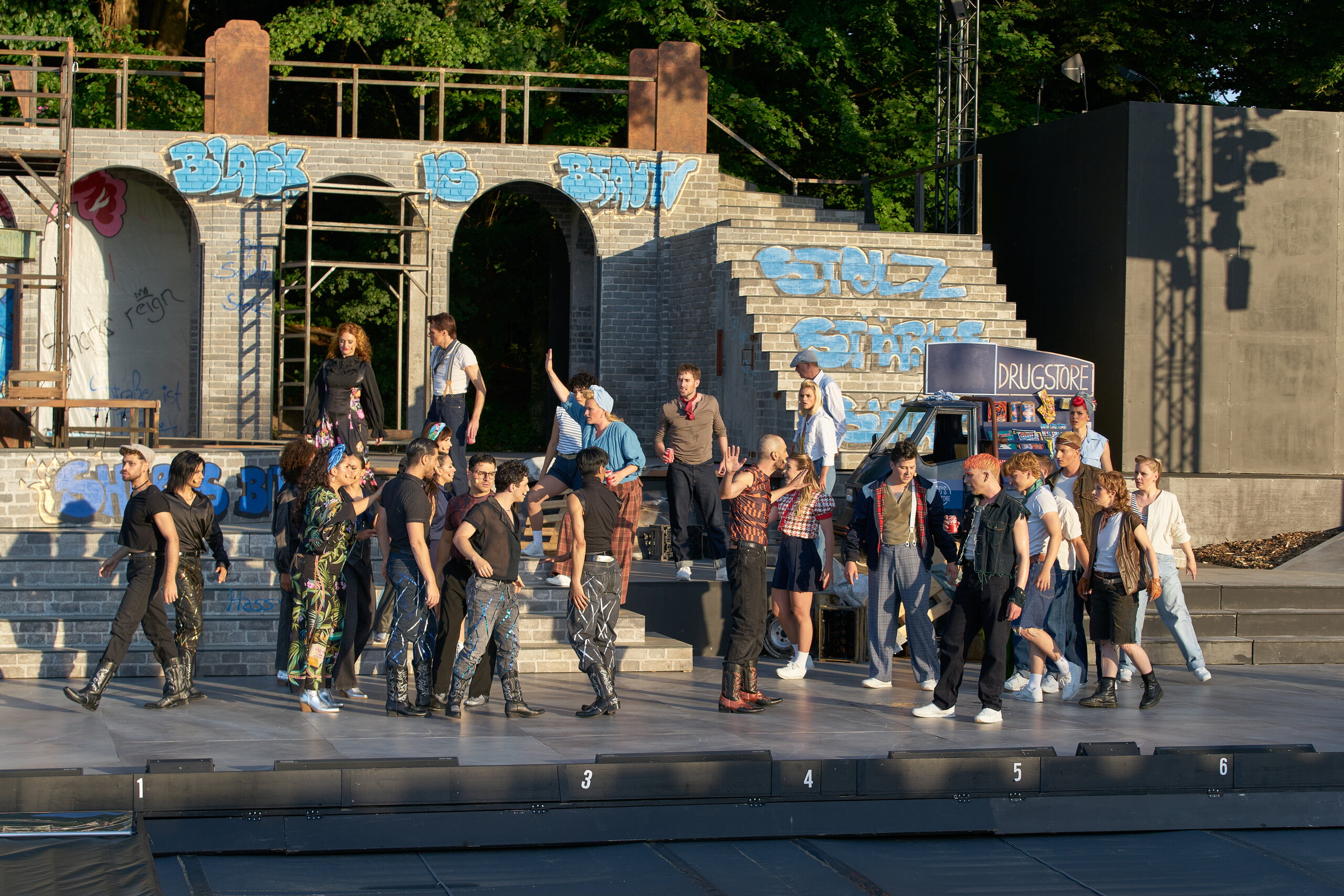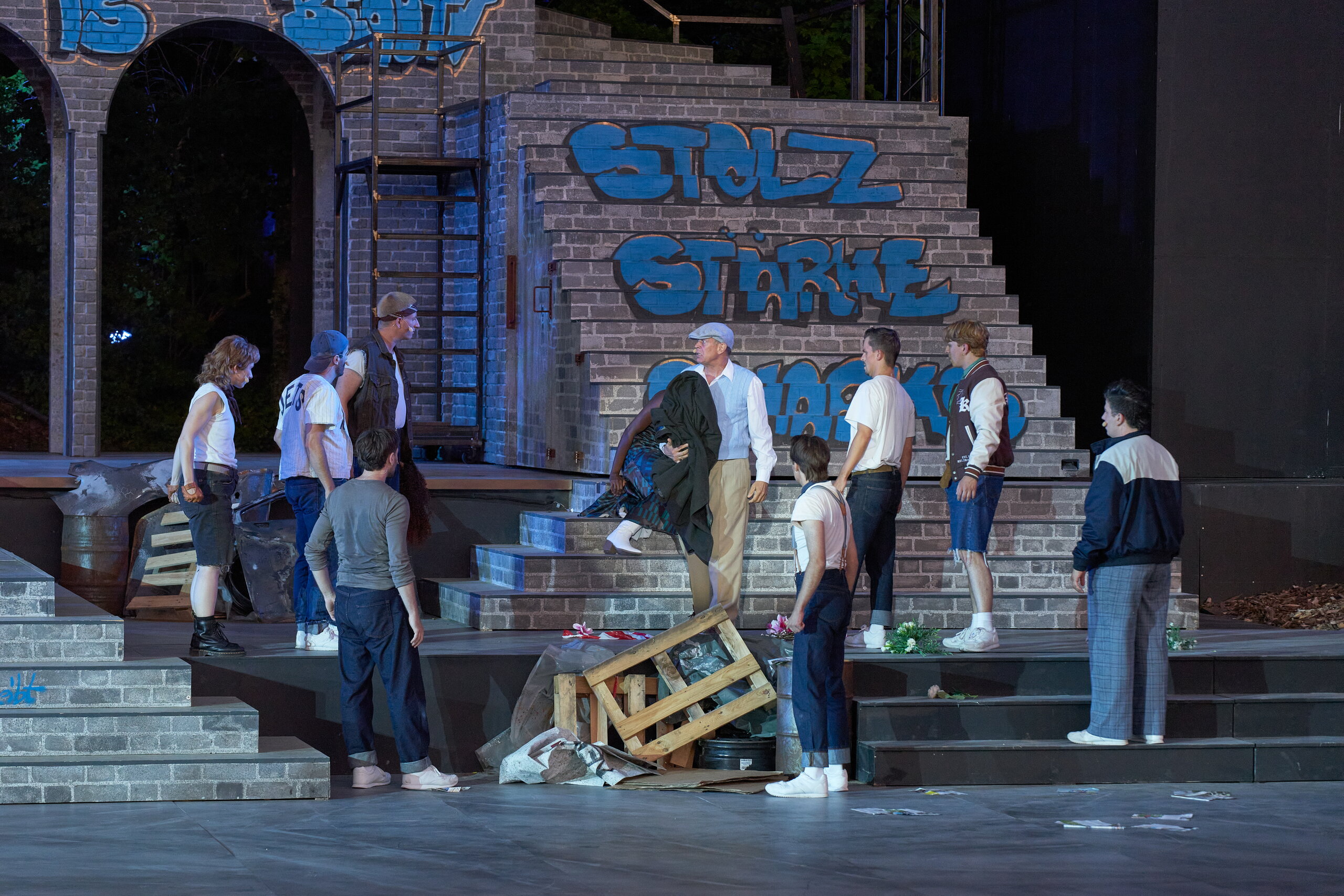Wie bringt man für das Musical West Side Story eine typische New-York-Szenerie auf die naturgrün umrahmte Eutiner Seebühne? Diese Aufgabe musste Bühnenbildner Jörg Brombacher lösen – im Interview erläutert er seine Überlegungen.