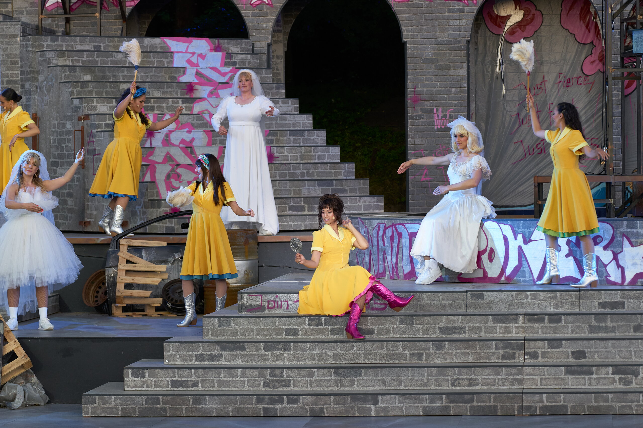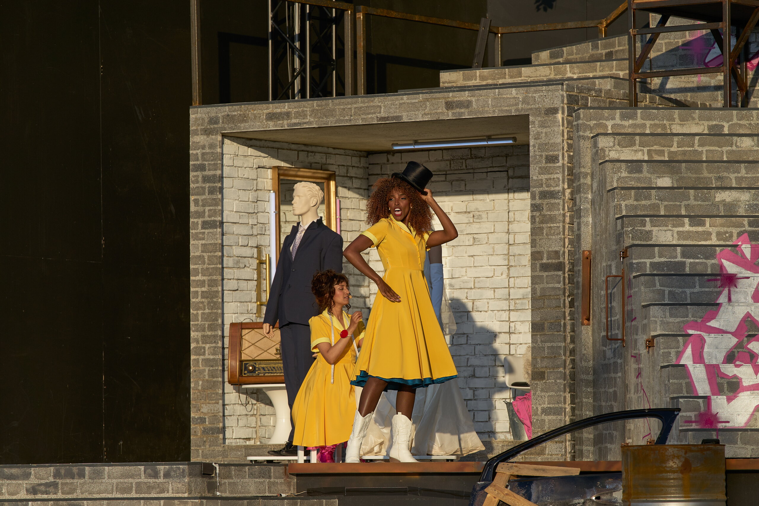Rassistische Schönheitsstandards beeinflussen noch immer die Wahrnehmung von Afro-Haar und Identität. Viele mussten sich über Generationen hinweg anpassen, um gesellschaftlich akzeptiert zu werden sei es durch das Glätten der Haare oder das Tragen von Perücken. Perücken in diesem Stück sind also nicht nur ein ästhetisches Element, sondern auch ein Symbol für Geschichte, Widerstand und Selbstbestimmung.