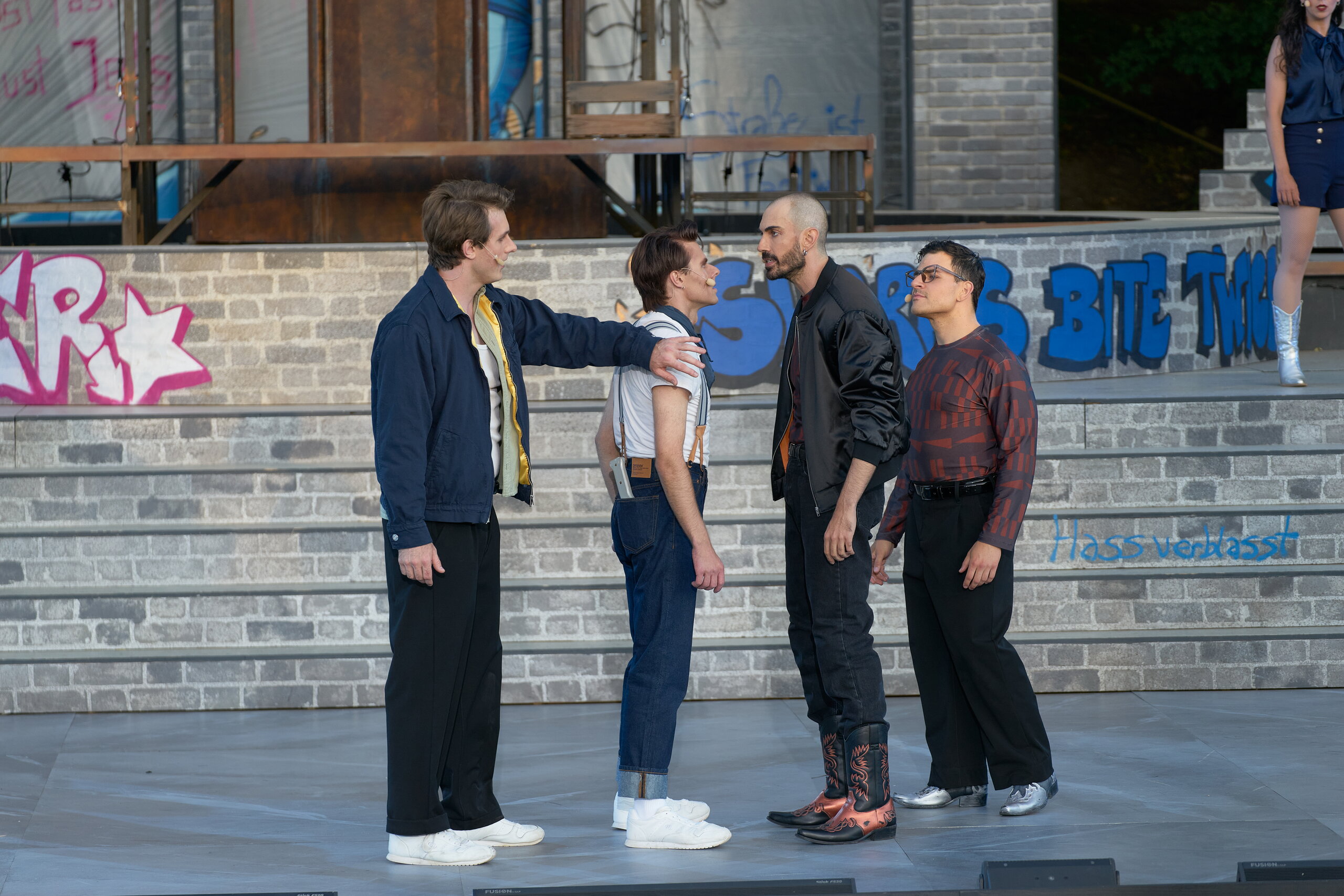 Dass wir die Songs nicht in englischer Sprache singen dürfen, finde ich schade, da die originalen Texte sehr poetisch und auch sehr passend auf der Musik liegen. An der West Side Story sehe ich persönlich ansonsten keinen Bedarf, Dinge zu verändern. Es ist ein zeitloses Werk und daher sicher auch einer der Gründe, warum es seit Jahrzehnten immer wieder rund um die Welt inszeniert wird.