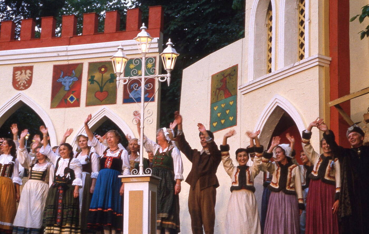 Die historischen Texte und Abbildungen dieser Rückschau (bis in die 1950er Jahre) stammen aus den jeweiligen Programmheften und Fotosammlungen und spiegeln ihre Zeit. Sie könnten Begriffe und Darstellungen enthalten, die heute als diskriminierend oder unangemessen gelten. Die Eutiner Festspiele distanzieren sich daher ausdrücklich von solchen Inhalten. Auch die Erwähnung teils umstrittener Persönlichkeiten erfolgt ausschließlich im historischen Zusammenhang. Der digitale Rückblick soll Geschichte transparent machen und zur kritischen Auseinandersetzung mit Sprache, Haltung und Zeitgeschehen anregen. Wo erforderlich, ergänzen wir erläuternde Hinweise. Hinweise auf sachliche Fehler oder notwendige Kontexte nehmen wir gerne unter info@eutiner-festspiele.de entgegen.